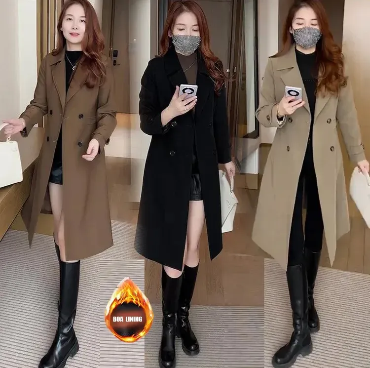 Mid-length fleece trench coat