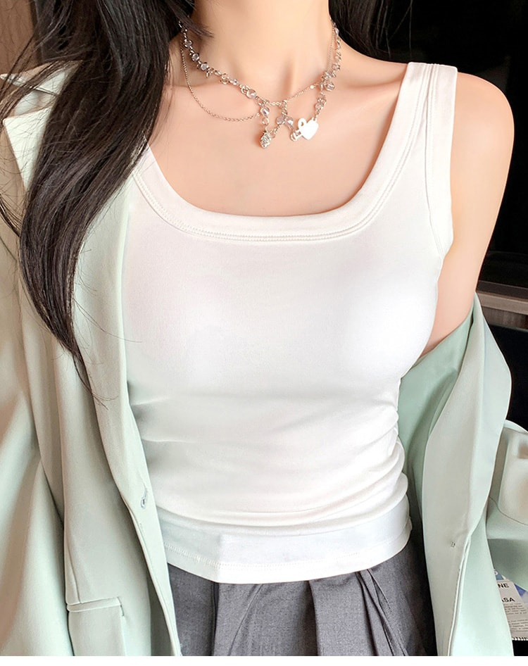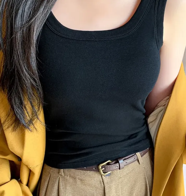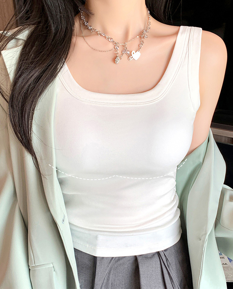 Camisole thin nonmarking bottoming undershirt female summer outwear with bra pads tops