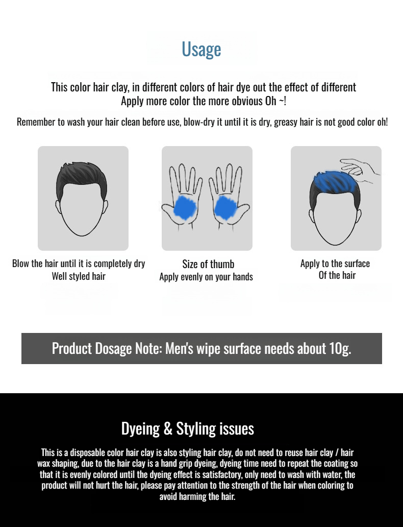Men's Cool Color Hair Clay Colorful Styling Wax Black Brown Cool Color Hair Clay