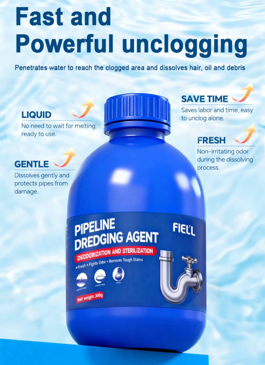 Bacteria and deodorant Pipe cleaner Pipe Unclogger Fast and efficient Blue Bottle Save time and effo