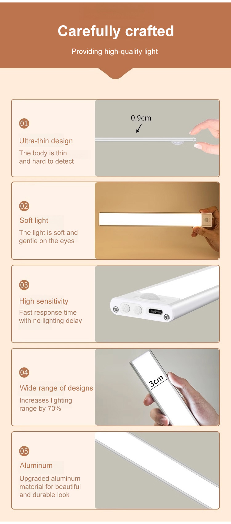 Ultra-thin sensor strip light